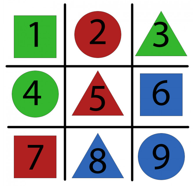 В данном наборе находится мишень напольная и 3 мяча для попадания по ней. Разделена мишень на девять квадратов. В каждом квадрате находится своя геометрическая фигура и определенная цифра, а также цвет. Существует множество вариантов упражнений с такой мишенью. Можно дать задание ребенку кидать мячик в определенную фигуру, цифру или цвет. Можно таким образом решать примеры. После регулярных занятий можно усложнять игры. Также для более лучшего результата рекомендуется заниматься с такой мишенью на балансировочной доске Бильгоу. Упражнения помогут развить у ребенка зрительную и моторную координацию, умение быстро считать, а также ловкость и скорость, так как мячики сами будут отскакивать от мишени и возвращаться к ребенку.