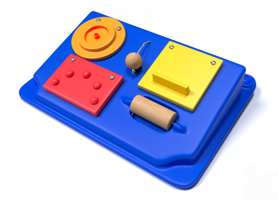 5-ти функциональный развивающий центр создан с целью раннего развития у детей от 3-х лет; также его можно использовать для обучения детей с задержками в развитии. Устройство имеет пластиковый корпус и 5 переключателей для активации различных функций (звуковое сопровождение, вибрация, световой эффект). Изготовлено из высококачественного ударопрочного пластика, имеет обтекаемые плавные формы без острых краёв и углов.