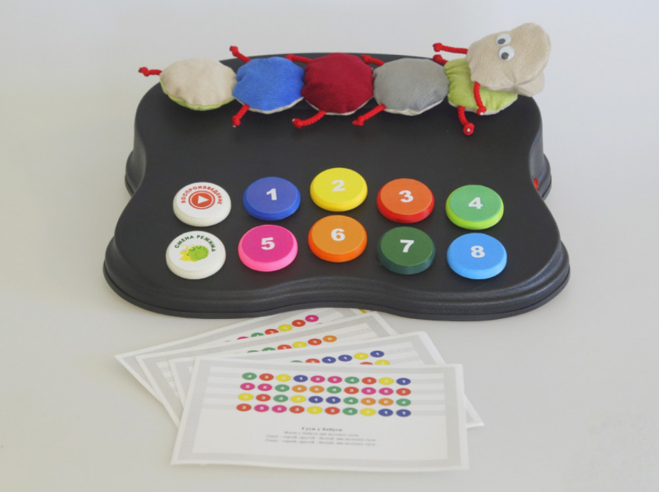 Развиваемые навыки: изучение причинно-следственных связей, развитие зрительного внимания, направленность действий, развитие хватательных рефлексов, укрепление мышц пальцев и рук, развитие сенсорного восприятия (чувствительности), развитие слухового восприятия, развитие языковых навыков и фонетики, развитие слуховых навыков, распознавание цифр, форм и цветов.