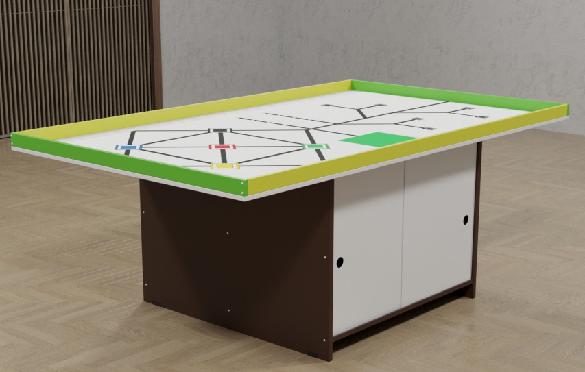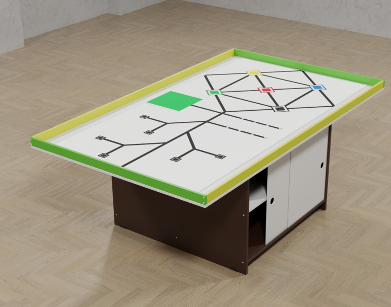 Представляем вам качественный стол классической и наиболее комфортной формы (с точки зрения использования большой группой человек) для робототехники и конструирования. Стол представляет собой полноценное рабочее пространство, которое поможет с максимальным комфортом погрузиться в изучения как начальных, так и более продвинутых уровней робототехники и конструирования. На столешницу ненесен специальный маршрут для тех роботов, которые способны передвинаться по черной линии. Боковые полки будут полезны детям для хранения всего необходимого для роботостроения.