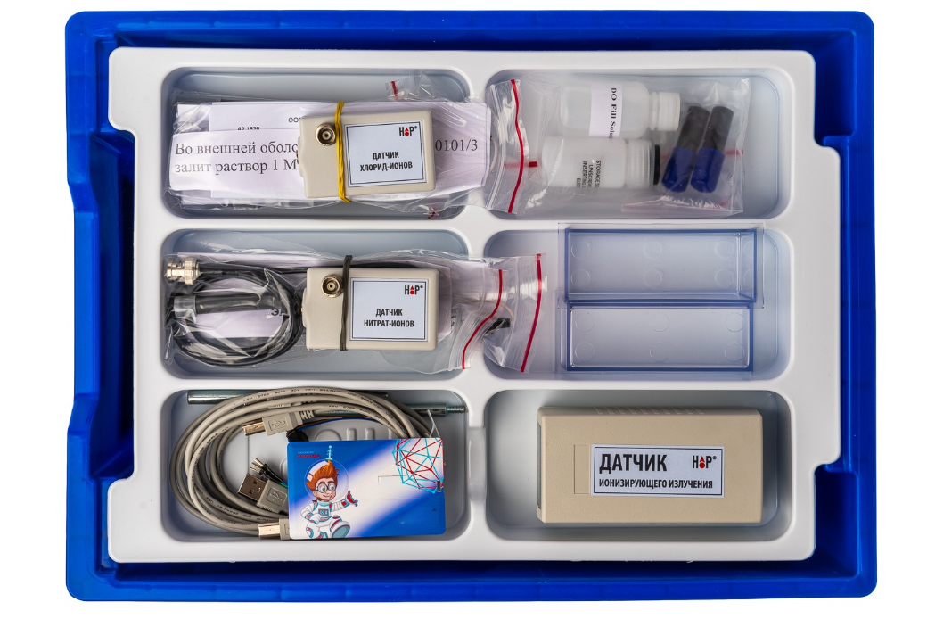 Цифровая лаборатория укомплектована в пластиковую систему хранения, которая закрывается прозрачной пластиковой крышкой на защелках для обеспечения наблюдения за содержимым. Комплект оборудования и датчики в контейнере располагаются на ложементах.