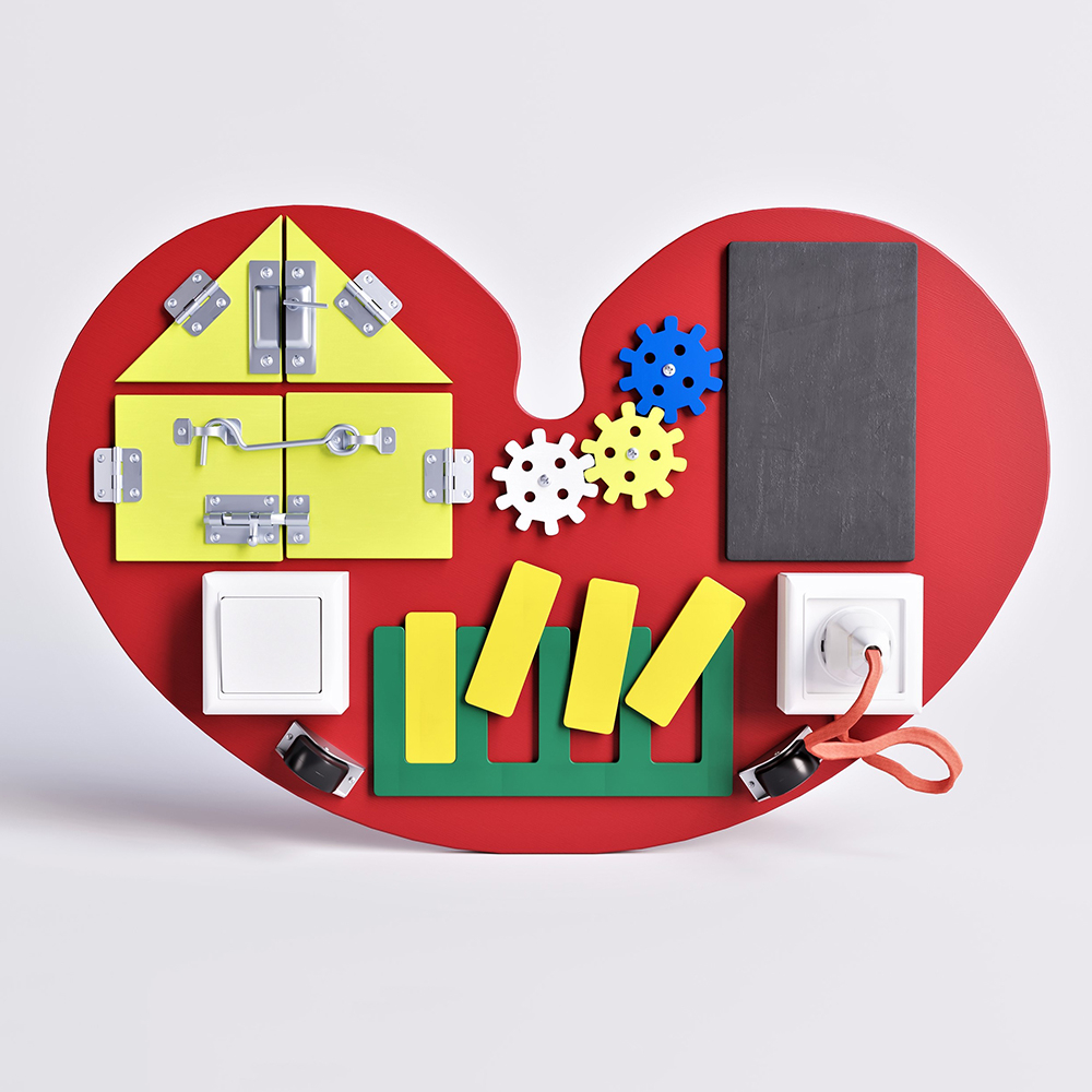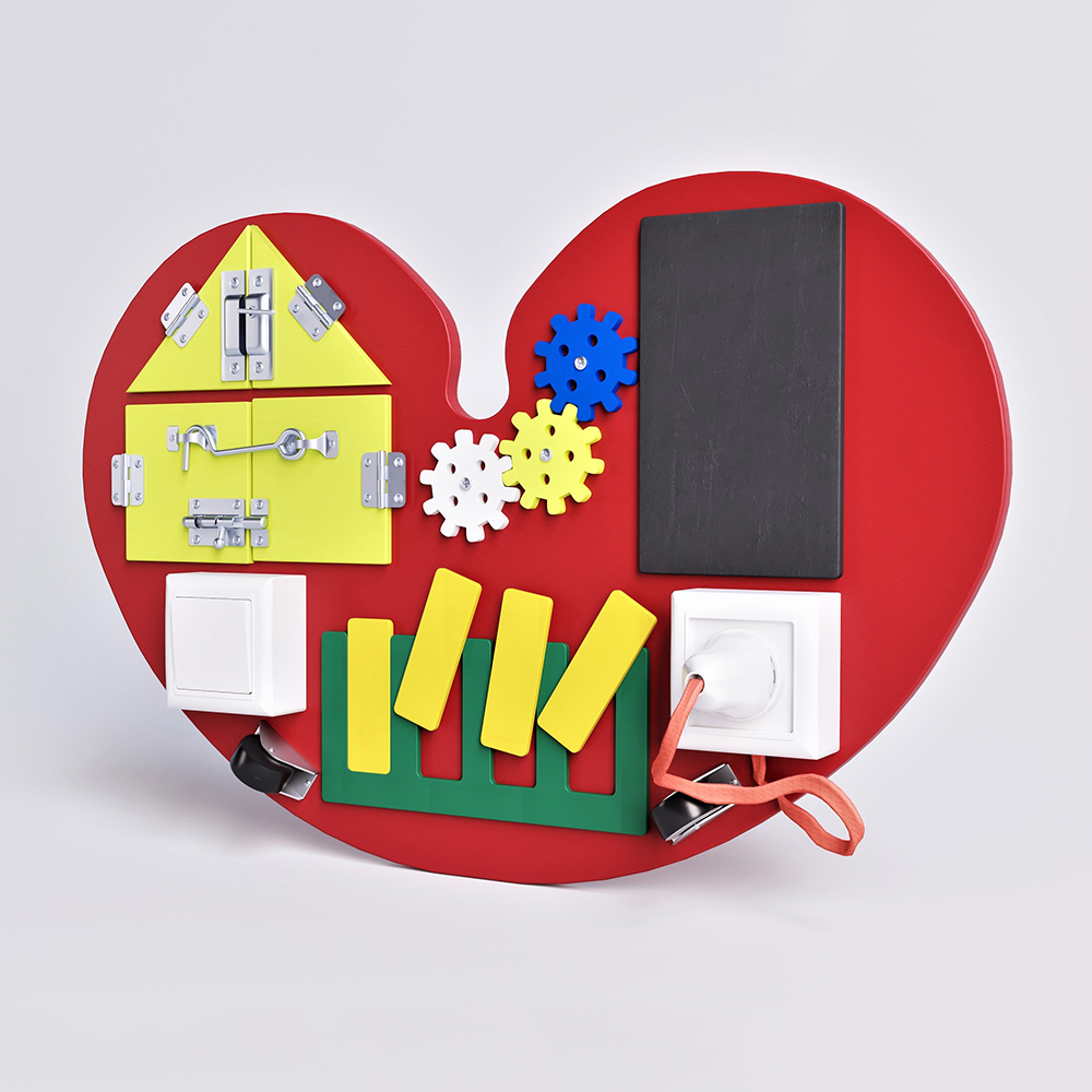 Представленная модель бизиборда обладает широким разнообразием элементов, что положительно влияет на развитие ребенка. Более того, яркий дизайн развивающей игры привлекает внимание ребенка сразу, устраняя детское любопытство. Игра прекрасно подходит для кабинета психолога и логопеда, а также для детских учреждений. Игра прекрасно украсит любую детскую комнату, постоянно радуя ребенка. Шнурок или дверцы на бизиборде — это не просто элемент. Это занятие, развлечение и обучение одновременно, благодаря которому малыш не замечает времени. Бизиборд привлекает внимание ребенка с первых минут. Ребенок развивается в моменте, прокачивая лучшие качества.