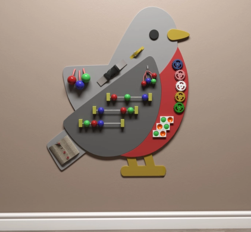 Необычная, а главное полезная доска, выполненная из натуральных материалов в виде яркой птицы, привлекает интерес ребенка ежесекундно. Бизиборд можно закрепить на стене для удобства, а также играть на полу. Модель бизиборда, включает в себя самые разнообразные элементы, что в несколько раз вызывает большой интерес и рвение ребенка к игре.