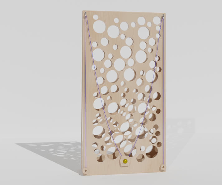 • Покажите ребенку, как двигается мячик при помощи веревок.