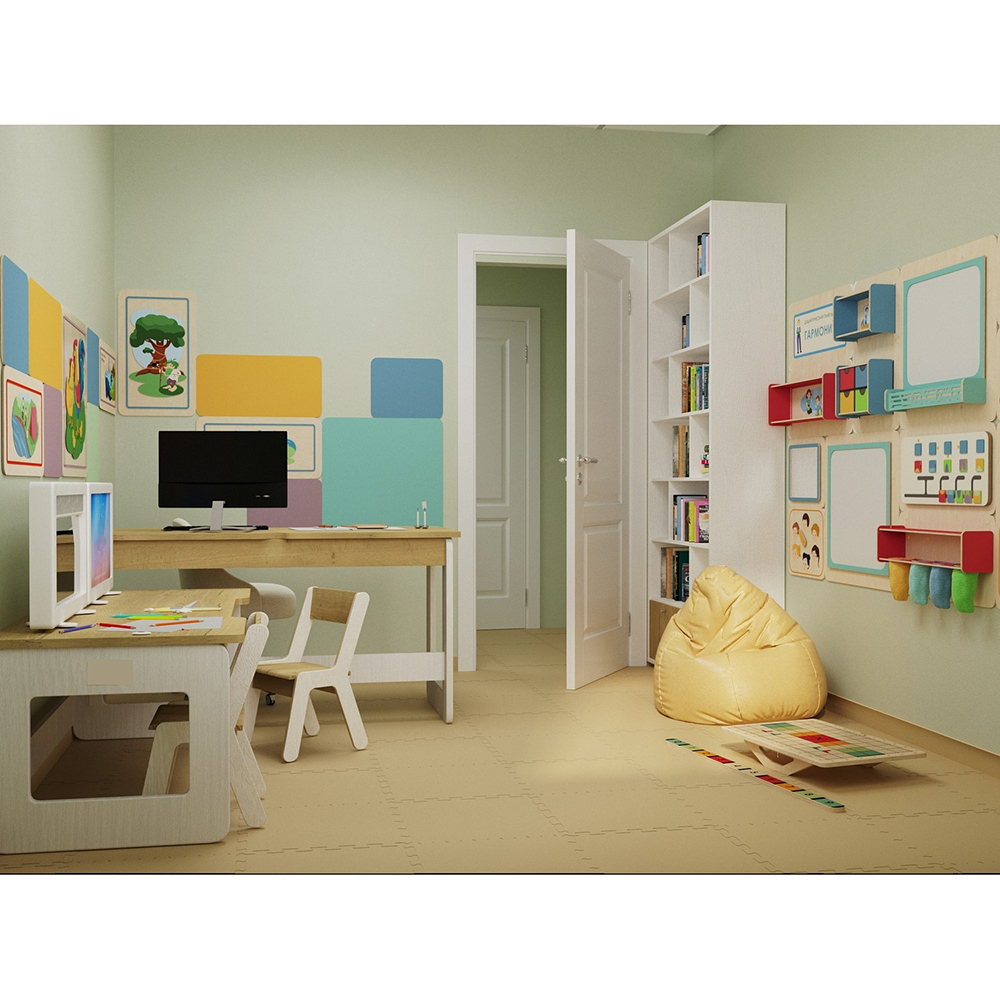 • Единый дизайн и эстетичность. В кабинете психолога важное значение играет комфортная располагающая среда, в которой ребёнок сможет раскрыться и довериться специалисту. Наше комплексное предложение решает эту задачу, ведь вся мебель, дидактические пособия и настенные панели имеют нейтральную, приятную глазу цветовую гамму, хорошо сочетаются между собой и создают дружелюбную атмосферу.