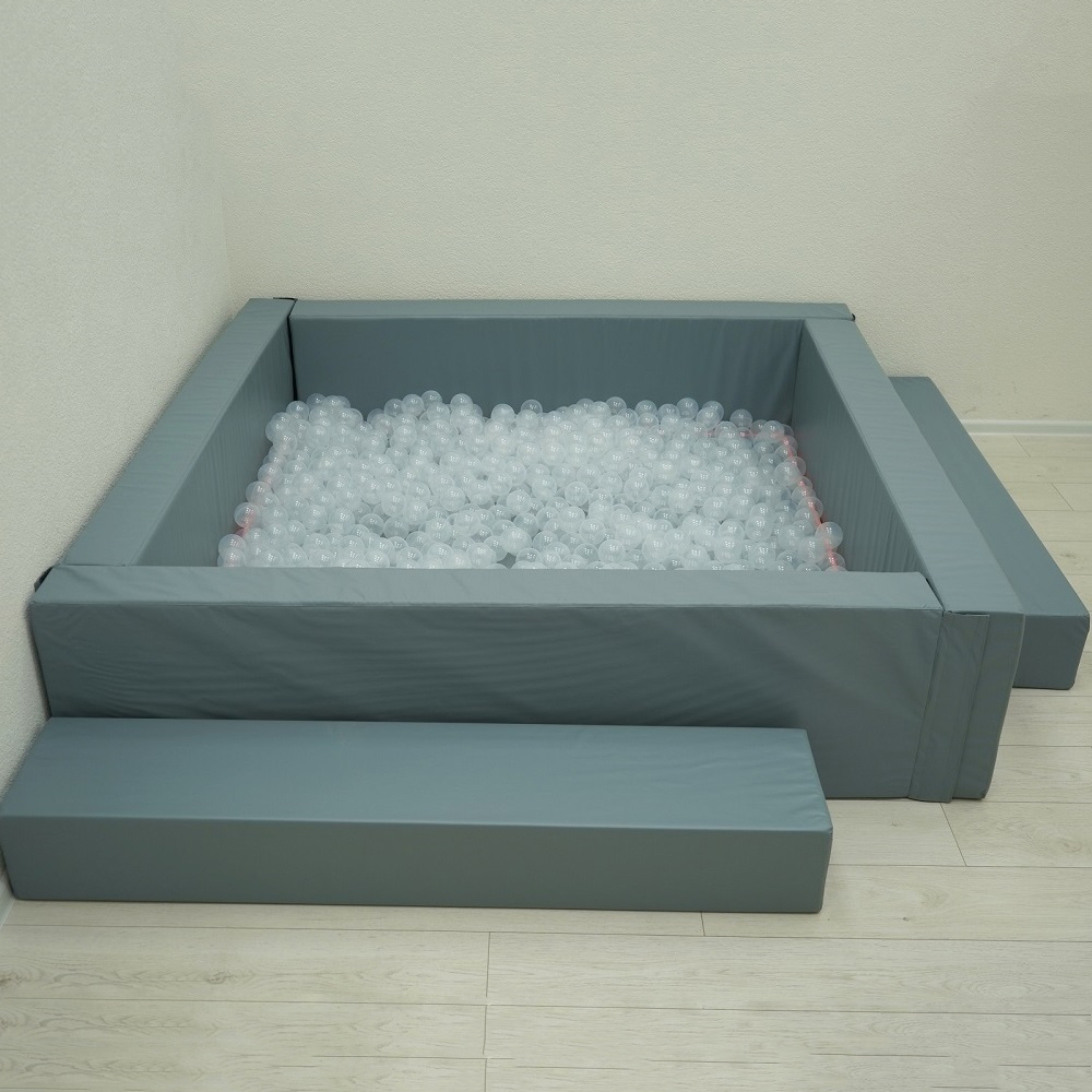 Мягкий квадратный манеж, наполненный прозрачными шариками. Предназначен для детских комнат в ДОУ, а также для оснащения сенсорных комнат и кабинетов детских психологов.