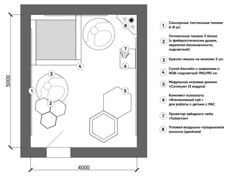 Главная Каталог Оборудование для сенсорных комнат Комплексные решения Комплект оборудования для сенсорной комнаты 20 м²