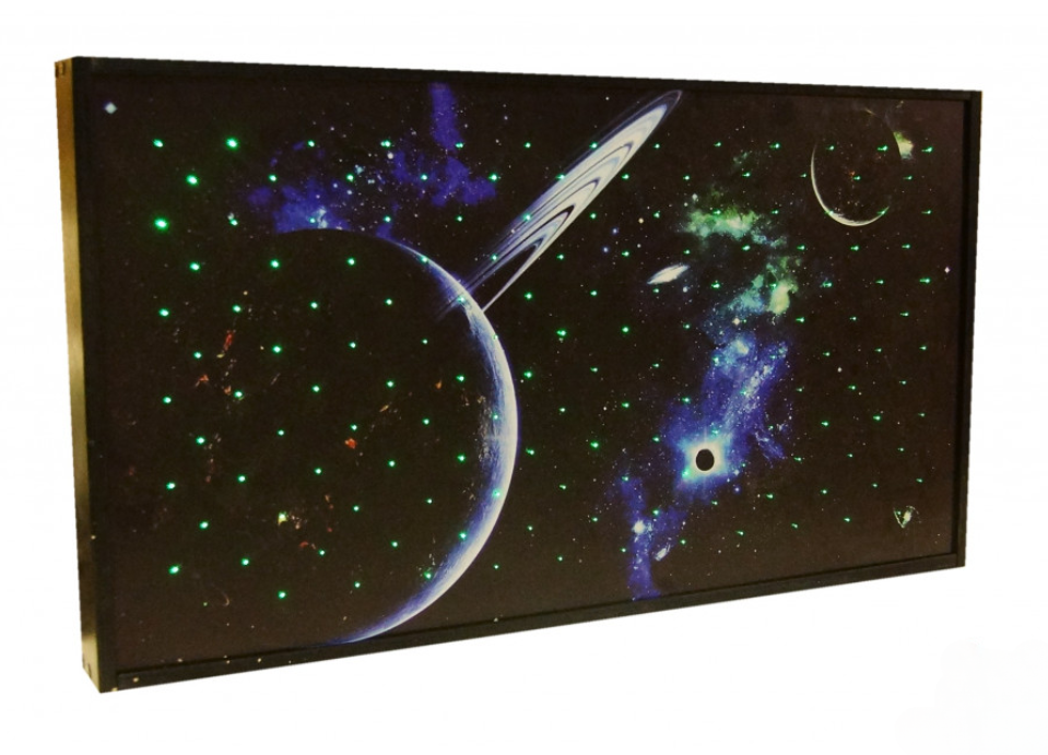 Настенный модуль на тему галактики станет отличным дополнением в сенсорную комнату. С помощью этого изделия у детей развивается зрительная память, снимается стресс и поднимается настроение. Модуль выполнен из фанеры, на которую нанесен принт галактики, с обратной стороны панели вставлены специальные волокна премиального качества, которые имитируют звезды. Одним из главных достоинств является мощный источник света, при котором волокна хорошо светятся даже днём, так что не обязательно затемнять комнату шторами. Изделие выполнено из натуральных материалов, и отвечает всем требованиям безопасности. В комплекте идет беспроводной пульт управления, переключающий режимы работы. Изделие поставляется в собранном виде в упаковке, предотвращающей повреждения при транспортировке.