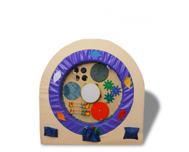 Тактильная панель с мягким кругом - это красивая игровая зона, из качественных материалов, которая не оставляет зацепок в ребяческих ручках. На панели есть барабан, по которому можно стучать, счеты и шестеренки, круги с шершавой поверхностью и большое зеркало. Тактильная панель с мягким кругом заинтересует как маленьких детей, так и постарше, а родителям поможет сохранить дом в целости и сохранности.