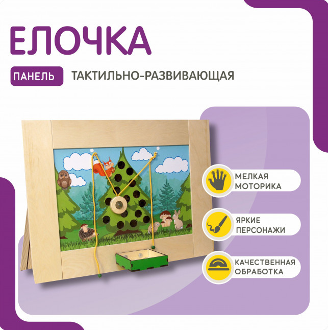 Погрузитесь в атмосферу зимнего леса вместе с тактильно-развивающей панелью Елочка! А в процессе игры малыш будет развивать мелкую моторику, координацию движений и воображение, что несомненно положительно скажется на его будущем.