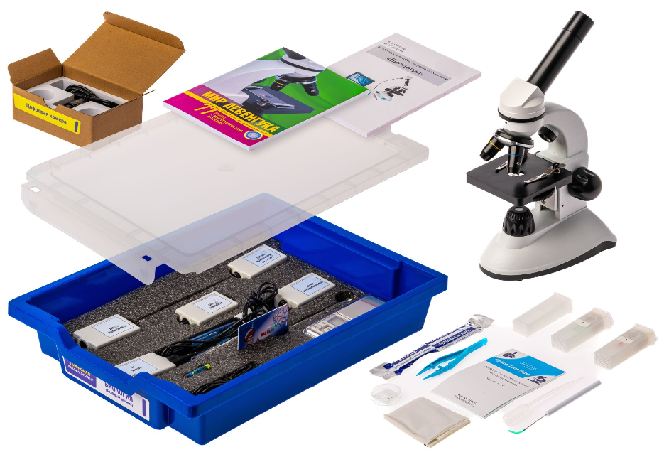 Кроме датчиков, в состав цифровой лаборатории входит набор оборудования для работы с микропрепаратами.