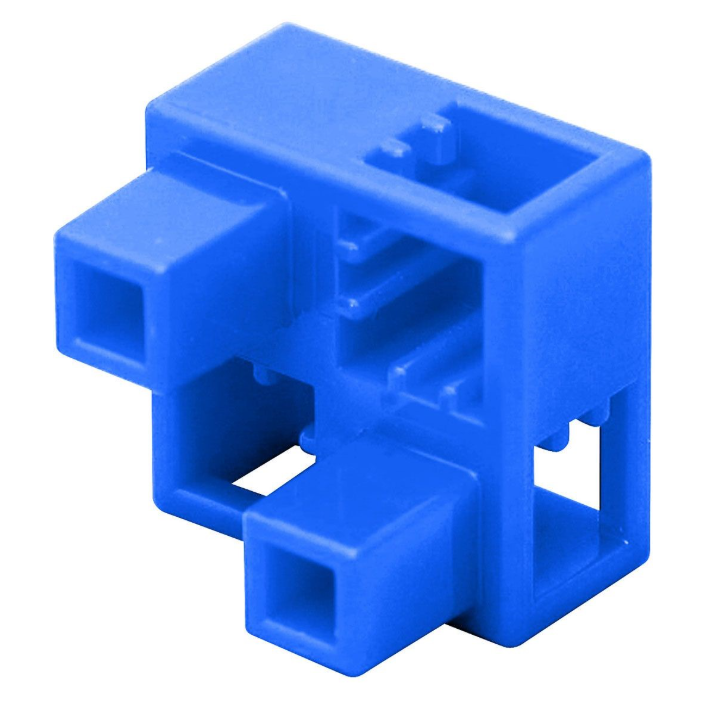 Половина куба Artec — специализированный соединительный элемент, который предоставляет уникальные возможности для построения сложных и угловых соединений. Это деталь, представляющая собой ровно половину от стандартного кубика-основания 20х20мм, но с определенным, продуманным расположением отверстий. Главная задача — создавать смещенные, угловые и Т-образные соединения там, где целый кубик был бы слишком громоздким или не подходил по геометрии.