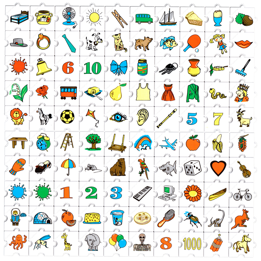 Каждая деталь конструктора содержит красочное изображение животных, птиц, насекомых, фруктов, цветов, транспортных средств, других предметов и объектов окружающего мира, хорошо узнаваемых ребенком.
