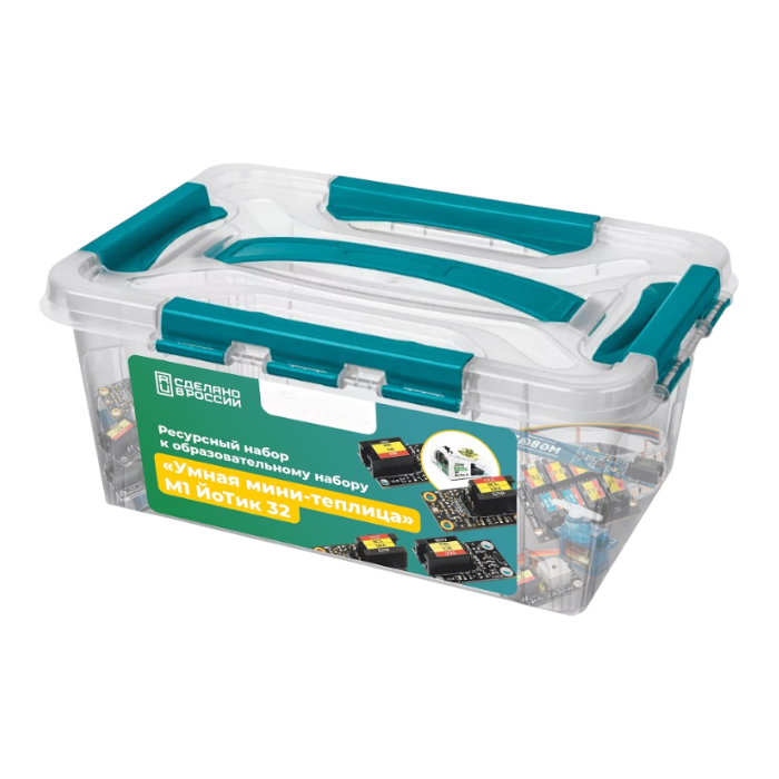 Ресурсный набор для образовательного набора «Умная мини-теплица» М1 ЙоТик 32 предназначен для тех, кто хочет углубленно освоить полный цикл технологии умного выращивания растений. Данный комплект помогает пройти путь от простого знакомства с возможностями умной теплицы до полноценной разработки собственной системы мониторинга и автоматического управления микроклиматом роста растений.