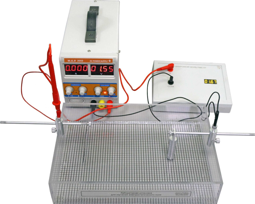 Лабораторная установка «Изучение электростатического поля» предназначена для постановки экспериментального опыта по изучению электростатического поля методом моделирования с помощью электролитической ванны. Данный модуль позволяет проводить исследования распределения потенциала в плоскости электролита с последующим построением эквипотенциальных линий и силовых линий поля. Все элементы модуля конструктивно выполнены в одном блоке.