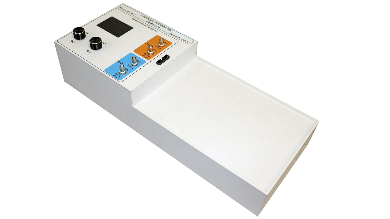 Корпус универсального измерительного комплекса выполнен из АВС пластика. Конструкция корпуса позволяет располагать на нем сменные лабораторные модули.